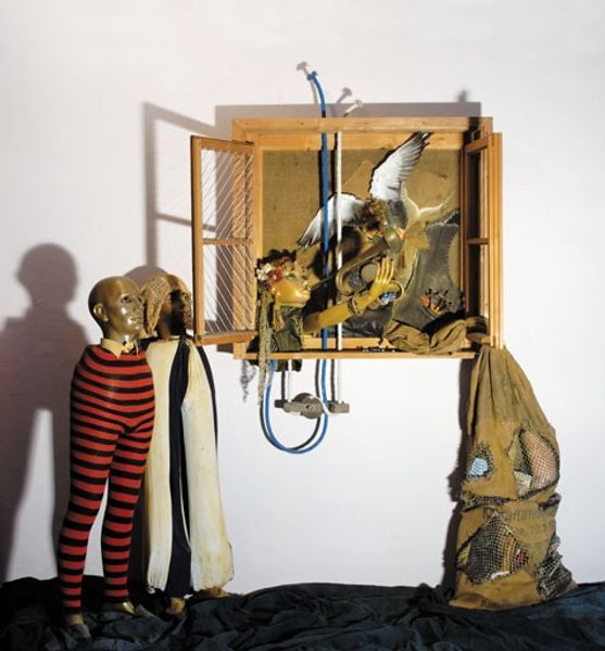 Jimmie Durham pieced together this sculpture, Cortez, from various materials, sometime in the late 20th or early 21st century. It’s like he’s building a body, or maybe deconstructing one, bit by bit. The contrast between the rough, industrial parts and the smoother, more human-like face is striking. You can almost feel the weight of the metal, the coldness of the pipes. Then there’s that lone arm, hanging there—a stark reminder of the human cost of history. It's gestural but static. The face is so impassive, as if history has frozen it in place. Durham's work often grapples with themes of colonialism and cultural identity, and I see this piece as part of that larger conversation. Maybe it's a bit like Duchamp, turning everyday objects into thought-provoking art, but with a sharper edge, and a deeper sense of history. Ultimately, it's a work that embraces ambiguity, inviting us to question the stories we tell ourselves about the past.