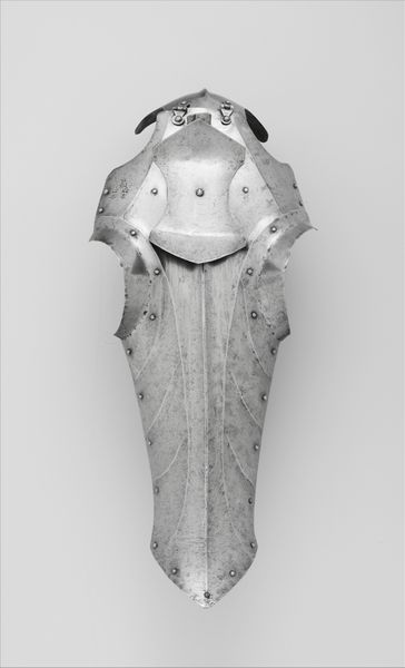 Editor: So this is "Right Thigh and Knee Defense" crafted sometime between 1530 and 1585 by Wolfgang Grosschedel. It's a striking piece of metalwork, imposing really. What stands out to me is how it represents not just protection, but also status. How do you interpret this piece in terms of its historical context and social role? Curator: Exactly. It's tempting to only see the martial function, but consider the politics of imagery at play here. This armor isn’t merely about deflecting blows; it's about projecting power, wealth, and a certain cultural ideal. The artistry itself—the etching, the shaping of the metal—speaks to a patron wealthy enough to commission such a piece. The question becomes, what societal narratives does this armor reinforce, and for whom? Editor: So, it's a kind of propaganda, even? Demonstrating power through artistic and technological skill. But what about the wearer? Were they active participants in shaping this narrative? Curator: Absolutely. The wearer wasn’t a passive recipient. They actively participated in constructing their own image through this armor. It offered a physical defense, of course, but it also contributed to their social standing and perhaps even their psychological sense of self. Armor became an extension of identity. Can you think of other historical examples where clothing or objects functioned similarly? Editor: Thinking about it now, royal portraits with extravagant garments probably served the same purpose, but on canvas. Curator: Precisely! And understanding that connection is key to unlocking the socio-political significance of objects like this "Right Thigh and Knee Defense." Editor: It reframes my perspective completely. It’s no longer just a static object but a dynamic statement within a specific social and political landscape. Curator: And hopefully encourages us to examine how such "statements" persist, in various forms, even today.