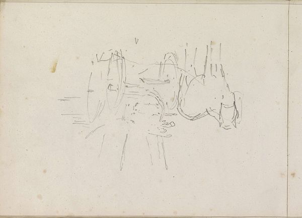 This small drawing of figures near a carriage was made by George Hendrik Breitner, probably in Amsterdam, using graphite on paper. Isn’t it amazing how Breitner captures so much movement with so few lines? The way he suggests the figures and the carriage is all about the energy of the marks, the quick scribbles, and the varying pressure of the graphite. It's like he's trying to catch a fleeting moment, not just represent it. Look at the wheel – or what I think is a wheel – how the looping, broken lines manage to convey both form and motion. It reminds me of some of Daumier’s quick sketches, where the line is everything: descriptive, expressive, and full of life. What both artists share is an ability to see the world with an almost brutal honesty, capturing the grit and the grace of everyday life without sentimentality. Art, at its best, gives us permission to see the world in new ways, to embrace the messy, the unresolved, and the beautifully ambiguous.