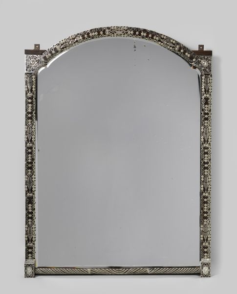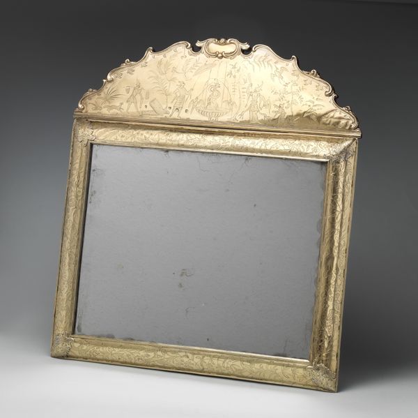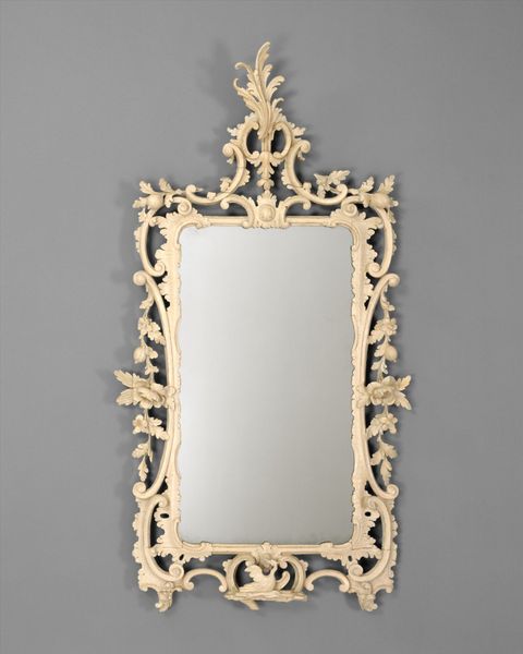 Editor: This object, "Mirror Frame," dates back to the mid-17th century, crafted by Herman Doomer, its medium appears to be carved wood. The frame has such depth and intricate carvings. What layers of symbolism might we find embedded within? Curator: Absolutely. Beyond its obvious function, consider the mirror's age-old association with self-reflection, both literal and metaphorical. Doomer’s baroque carving, with its intense detail, directs the gaze not just at the reflected image, but also inwards, towards the soul. The dark, perhaps even somber tone of the wood reinforces this introspective quality, doesn't it? What does the geometric order overlaid with organic motifs evoke in you? Editor: It does feel like the tension of bringing order to chaos, but the dark tone almost mutes that, bringing it back to the somber mood you mentioned. It makes me think, are there common visual motifs during this time that evoke "vanitas"? Curator: Precisely. The presence of such intricate, decorative work – bordering on excess, typical of the baroque style - existing alongside that darkness alludes to the transience of earthly beauty and the inevitability of decay, and ultimately, self confrontation with one's mortality. Are these purely decorative flourishes, or whispers of deeper anxieties encoded within the visual language? Editor: It is amazing how something that appears to be decorative art could invite a much deeper read on self reflection! I'll certainly never look at Baroque art the same way again! Curator: And it's through this deeper reading that we honor the cultural memory embedded within. Thank you!