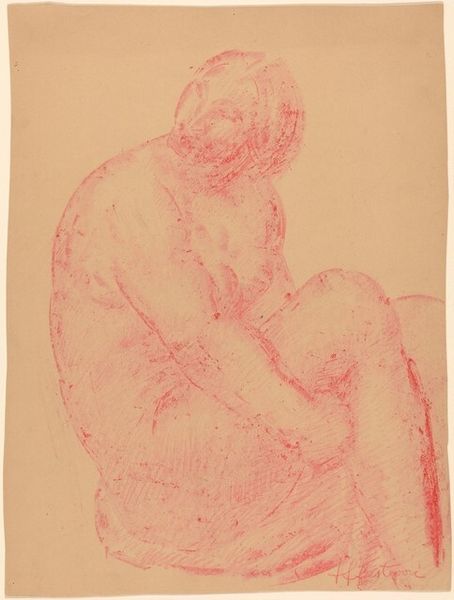 Käthe Kollwitz created this charcoal drawing, "Kauernde Mutter, ihr Kind an sich drückend," which translates to "Crouching Mother Holding her Child," using charcoal on paper. Notice the composition's stark simplicity. A mother and child are huddled together, almost enveloped by the dark, dense strokes of charcoal. Kollwitz masterfully uses line and shading to create a sense of weight and emotional intensity. The rough texture of the charcoal adds to the raw, almost brutal honesty of the image. Kollwitz's decision to focus on the formal qualities directs us to the essence of maternal grief and protection. The deliberate lack of detail forces us to confront the emotional core of the subject. The bold outlines and shadowed areas emphasize the physical and emotional burden the mother carries. The drawing challenges conventional representations of motherhood, delving into the profound depths of human suffering. The drawing is a powerful statement of human resilience and despair, where form and content merge to evoke empathy and reflection.