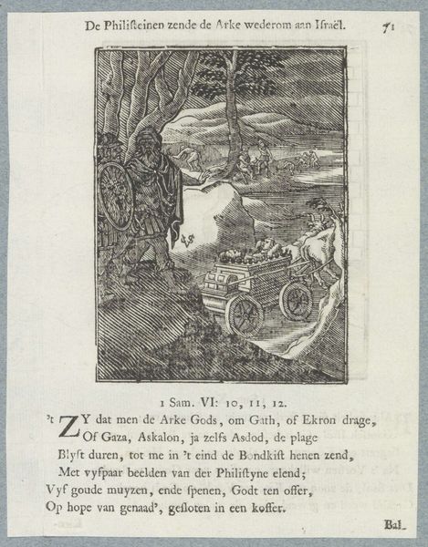 This print, made by Christoffel van Sichem II, depicts the hanging of five Amorite kings. It's a woodcut, a relatively democratic medium in its time, allowing for the widespread distribution of imagery. Look closely and you'll notice the stark contrasts achieved through the carving away of wood, leaving raised lines to form the image. This subtractive process demands precision and control, shaping the narrative with each deliberate cut. The texture of the wood itself subtly influences the final print, giving it a tactile quality despite its two-dimensionality. Woodcuts were often used to illustrate religious or historical events, serving as a form of visual storytelling for a broad audience. The labor-intensive process, though perhaps not immediately apparent, speaks to a time when images were painstakingly crafted, each print a testament to the skill and effort involved in its creation. The commercial success of prints like these depended on both the artistry of the designer and the craft of the woodcutter. Considering the materials, making, and context provides a more comprehensive understanding, blurring the lines between art, craft, and social communication.