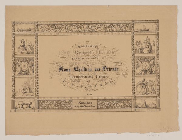 This office calendar, made in 1869 by Johannes Henderikus Morriën, is a beautiful example of lithography, a printing process that allows for detailed images and text to be reproduced efficiently. The design is meticulously crafted, with ornate lettering and illustrations of animals, people, and landscapes surrounding the calendar itself. The lithographic process involves drawing on a flat stone or metal plate with a greasy substance, then treating the surface so that ink adheres only to the drawn areas. It is a chemical printing process that relies on the repulsion of oil and water. This allowed for the mass production of colorful and informative calendars like this one. The calendar is not just a practical tool; it’s a reflection of the growing commercial culture of the time. The precise printing and decorative elements speak to the increasing importance of visual communication and the desire for businesses to present themselves in an attractive and professional manner. Looking at this calendar, we can appreciate the skill of the lithographer and the broader social context in which it was created, reminding us that even everyday objects can be rich with cultural meaning.