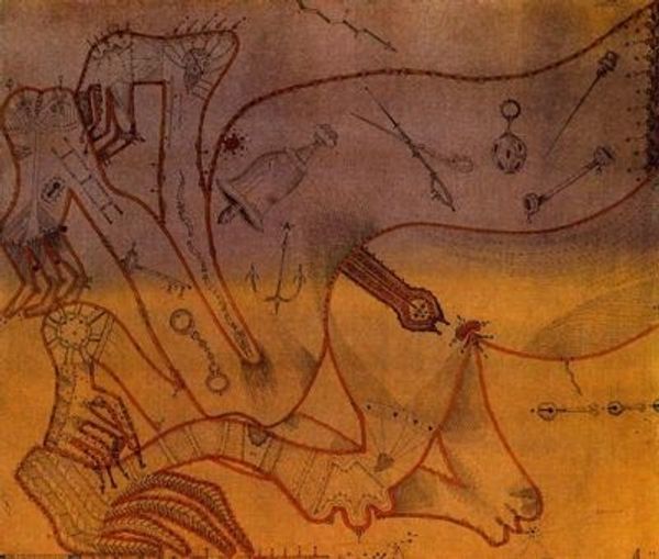 This is an undated painting titled "Untitled" by Tsuguharu Foujita. The earth-toned backdrop hosts two horses, one pale, one brown, that dominate the composition in terms of color. The artist's use of color and form prompts us to consider the relationships at play. The painting offers a contrast through its forms, textures, and distribution of shapes. The curved backs of the horses, rendered with a delicate line, contrast the flatness of the landscape. This combination of linear precision against a broad wash hints at Foujita's negotiation between Western and Japanese aesthetics. There's a certain tension between the traditional and the modern. Foujita engages with the established pictorial space, but through abstraction, he destabilizes our expectations. The painting invites ongoing interpretation, where its cultural and philosophical resonances continue to evolve with our understanding.