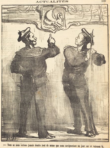 Théophile Alexandre Steinlen created this lithographic cover for a piece of sheet music, titled "Vive La Liberté!" During Steinlen's lifetime, France saw massive social changes, including rapid industrialization. His art frequently reflects his socialist leanings. Here, the tension between the classes is palpable. The central figures—a member of the bourgeoisie with his cane and a woman in an elaborate outfit—are confronted by a figure of authority, possibly representing government suppression. They are surrounded by a crowd that seems to be watching this exchange with a mix of curiosity and apprehension. The phrase "Vive La Liberté!" or "Long Live Liberty!" paired with the line "Live something! Or Live nothing!" suggests a moment of political awakening amidst social constraints. Steinlen captures the emotional weight of living under a regime that dictates expression, yet the crowd suggests the stirring of collective consciousness. As you consider this image, think about how Steinlen uses it to mirror societal divisions and the personal struggle for freedom of expression.