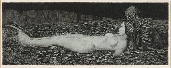Editor: Here we have "Freed," a print in ink by Harold Persico Paris, dating to around the 1950s. It depicts an abstracted, reclining figure. The stark monochrome and heavy lines give it a real sense of gravity. What do you see in this piece from a historical perspective? Curator: The title is intriguing. "Freed" suggests emancipation, but from what? Looking at the artist, Paris, he tragically took his own life relatively young, which casts a different light. This work, viewed through that lens, prompts considerations around psychological states and societal pressures of the mid-20th century. Was this artwork attempting to represent personal struggles or political and institutional restraints? Editor: I hadn’t thought of that connection to Paris's life. Does the abstraction itself connect to those potential themes of constraint? The body is there, but it’s distorted, almost fragmented. Curator: Precisely! The figure’s abstraction can be interpreted as a visual metaphor for psychological fragmentation. In the post-war era, discussions surrounding mental health began to shift, acknowledging trauma and internal struggles. Also, consider artistic conventions; Abstract Expressionism was a movement rooted in conveying emotions and subjective experiences in response to external pressures. Does knowing more about the artist change your reading of the image? Editor: It makes me wonder if "Freed" is ironic. Maybe it is commenting on how freedom is something yearned for but rarely, if ever, fully attained. It's also now much more personal for me; maybe it suggests the artist felt psychologically trapped, despite outward appearances. Curator: Yes, exactly. Considering these possibilities makes the artwork speak more powerfully, showing that historical and biographical contexts crucially shape how we see the art and how it continues to speak. Editor: This has changed how I will examine artwork now. Context matters more than I realized.