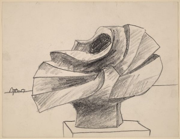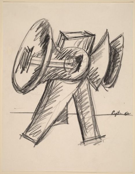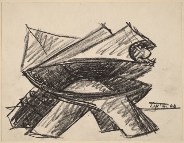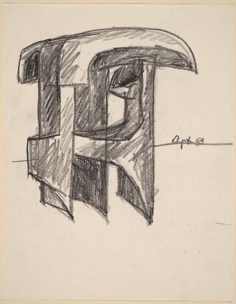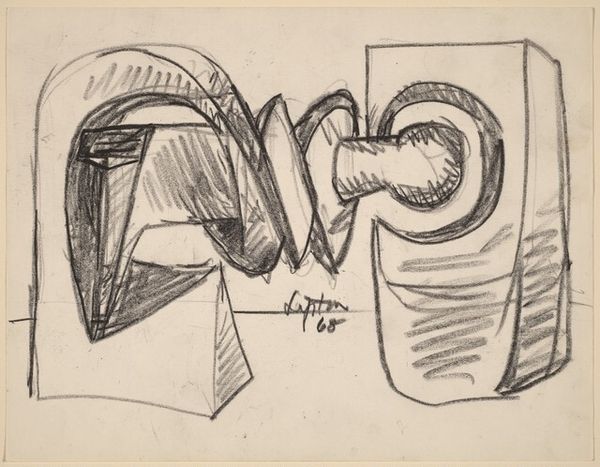 Seymour Lipton made this untitled drawing in 1967, using graphite on paper. Graphite in stick form, or pencil, is a humble material, often used for preliminary sketches. And that is likely the case here. Lipton was primarily a sculptor, using bronze and other metals, and this drawing feels like a study for a three-dimensional piece. Note how the graphite is applied with varying pressure, creating a sense of depth and volume. The way the artist has rendered light and shadow gives the forms a weighty, almost industrial presence. While graphite might seem like a straightforward material, its production involves mining and processing, connecting it to wider social issues of labor and resource extraction. And the hand-drawn quality of this sketch, with its visible marks and erasures, reminds us of the artist's physical engagement with the material, a direct connection between mind and hand. Appreciating the making process helps us recognize the value in both the concept and the craft.