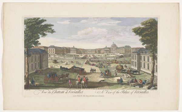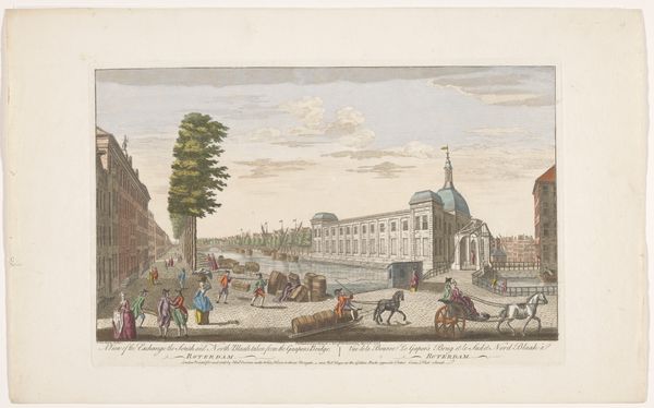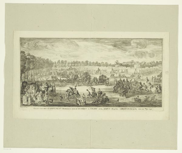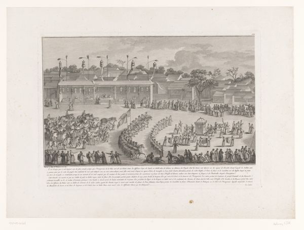 Editor: This is "Doctor Syntax at a horse race in York," an etching and watercolor by Thomas Rowlandson from 1819, currently housed in the Rijksmuseum. It's such a bustling scene! The energy of the crowd and the race is palpable. How do you interpret this work? Curator: It’s a fascinating snapshot of Georgian England. Rowlandson was a master of social satire, and this piece, like much of his work, uses caricature to critique societal norms. Consider the figure of Doctor Syntax himself; his presence amidst this spectacle raises questions about class and the pursuit of leisure. The horse race, on the surface a display of wealth and sport, reveals underlying anxieties about social mobility and moral decay. How do you think the figures in the crowd contribute to this reading? Editor: I notice the wide range of reactions—some are celebratory, some seem distressed. It feels like Rowlandson is emphasizing the performative aspect of wealth. Curator: Precisely. He uses caricature to highlight how these displays of wealth were also deeply performative, underscoring the inequalities inherent in the system. Are we really to believe that they reflect actual states of joy or despair, or are they exaggerated for social consumption? Moreover, what does it mean that he centers a clergyman, Doctor Syntax, in the work. What could that symbolize for contemporary audiences of the time? Editor: Maybe a criticism of the Church? Perhaps, questioning its relevance to everyday life, or involvement in worldly pleasures? Curator: Exactly! Rowlandson’s art acts as a form of visual commentary. His focus on fashion, social interactions, and leisure activities allowed him to examine identity construction within 19th-century British society. It makes me wonder who could see it and would want to buy it? Editor: This gives me so much to think about. Thank you for helping me understand the multiple layers embedded in what I originally perceived as a simple genre scene. Curator: Indeed, looking closely unveils so much social commentary. These pieces serve as important reminders to engage with how images communicate complex social meanings.