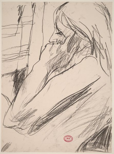 Rein Dool made this drawing of Bouke Ylstra with pencil on paper. What I see here is the bare minimum of marks needed to suggest a person. Dool works reductively, like he’s carving away at reality to find its essence. The drawing is pale, with the faintest suggestion of form and tone, just a whisper of light, yet it comes alive. Look at the way he draws the bridge of the nose, it’s almost one continuous line from the top of the glasses. This is like a gentle invitation into the mind of the sitter, catching his likeness with a gentle touch, a light observation. The whole thing has a kind of delicate hesitancy, a tenderness which reminds me of the portrait drawings of David Hockney, but with a much more limited tonal range. The space around the figure becomes just as important as the figure itself. There’s so much ambiguity here, and I love it.