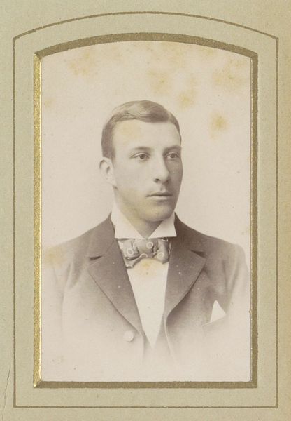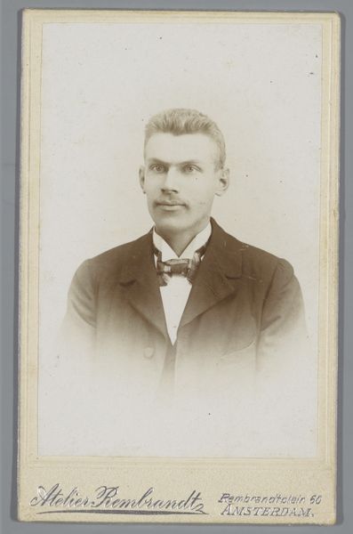 This is a portrait of a man made with the photographic techniques available at the time, by Johan Christiaan Reesinck. The albumen print showcases photography's unique ability to capture a moment in time. The process involved coating paper with albumen, derived from egg whites, before applying a light-sensitive silver solution. This process resulted in a distinctive image with fine detail and a characteristic sepia tone, visible in the warm brown hues of the man's attire and skin. The subject's formal wear—jacket and tie—suggests a deliberate construction of identity, mirroring the care and labor invested in the photographic process itself. Each step, from coating the paper to the final print, demanded precision and skill. Photography in this era was more than just documentation; it was a crafted representation, imbued with the values and aspirations of its subjects. By understanding the materials, techniques, and social context, we can appreciate this work as a marriage of craft and technology, a testament to the cultural significance of portraiture.