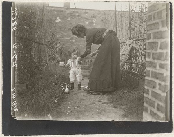 G. Hidderley captured this gelatin silver print of a woman hanging laundry, presumably in Volendam. The photograph's muted tones emphasize its geometrical composition and underlying contrasts. The architectural backdrop and the woman's figure create a series of vertical and horizontal lines, organizing the space into distinct planes. The dark, solid brick wall sharply contrasts with the light clothing suspended on the line, drawing our eye across this binary. Similarly, the woman's form, though central, is integrated within this pattern, her traditional dress forming a subtle counterpoint to the more rigid architectural lines. This interplay between organic and geometric is important here. Everyday scenes are lifted beyond mere representation by the way the photographer has framed and structured the image. By using these formal strategies, the photograph invites the viewer to look beyond its documentary qualities and consider its compositional harmony.