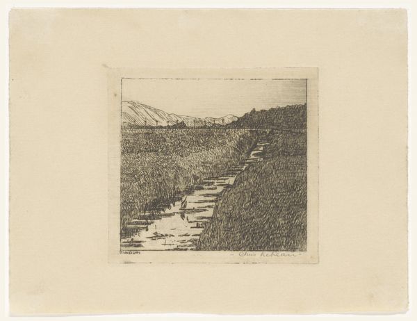 Simon Moulijn made this landscape, Riviergezicht, in the Netherlands at the turn of the 20th century, using graphite on paper. At that time, a renewed interest in landscape art emerged, linked to a growing national consciousness. This drawing presents a panoramic view of a river landscape, meticulously rendered with attention to detail and atmosphere. Moulijn's choice of subject matter and medium reflects the artistic conventions of his time, when drawing was considered an important skill for artists to capture and study the natural world. The detailed depiction of the landscape suggests a desire to document and celebrate the Dutch countryside. As art historians, we can research Dutch art and cultural history of the late 19th and early 20th centuries to better understand the artist's influences and the work's original context. Art is never created in a vacuum: it’s always rooted in a specific moment, reflecting the values and concerns of its time.
