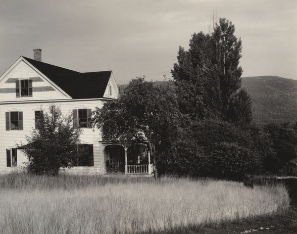 Alfred Stieglitz made this silver print, called *House, Leaves and Tree*, at some point in his career. The way he’s captured this scene, it feels less like a snapshot and more like a still life. Look at the way the light filters through the leaves, creating these delicate shadows. There's a beautiful, quiet energy in the way the textures play off each other—the smooth wood of the house against the wild, untamed foliage. And the way he frames the tree against the backdrop of the house; it's almost like he's inviting us to consider the relationship between the natural and the man-made. I keep coming back to the rocking chair. It suggests a human presence, a moment of quiet contemplation. Stieglitz work has the ability to transform the mundane into something profound. I am reminded of paintings by Edward Hopper in the way the light animates architectural structures.