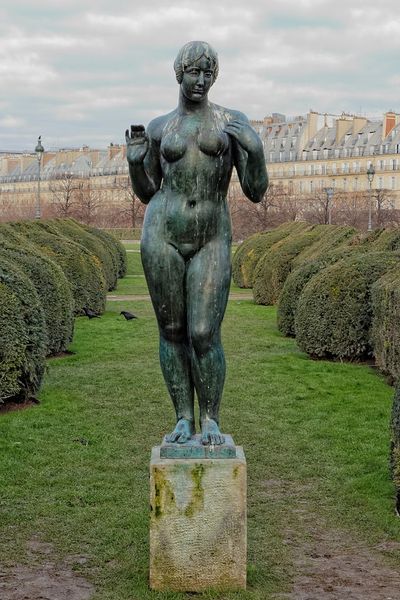 Here we have Pomone drapée, made by Aristide Maillol. Look at the way he uses the bronze, this feels like such a direct and thoughtful process. The statue has a kind of muted, aged, green colour, which is earthy and gives a feeling of something old and precious. I find myself drawn to her drapery. It’s not trying to be super realistic; it’s more about the feeling of fabric. There's these vertical lines running down her body, almost like the bronze itself is a kind of flowing material. Maillol really makes you think about weight and volume. This brings to mind the work of Henry Moore, there is a similar emphasis on simple, rounded forms. But with Maillol, it feels a bit more grounded, like he's celebrating the everyday beauty of the human form.