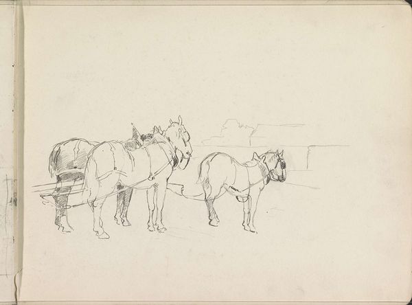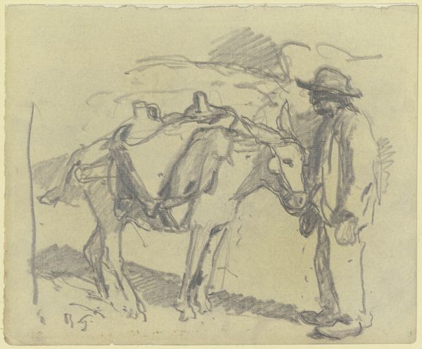 This is "Amazone met begeleider," an undated etching by Isaac Israels. Israels, a Dutch painter known for his impressionistic style, captures a scene of leisure and privilege. Here, we see a woman, elegantly dressed and seated confidently on horseback, accompanied by an attendant. The etching technique lends a sense of immediacy, as if we are catching a fleeting glimpse of a specific moment in time. The presence of the attendant underscores the social and economic disparities of the era, as equestrian activities were largely exclusive to the upper classes. The woman's poised demeanor contrasts with the implied labor of her companion, hinting at the complex interplay of gender, class, and power. Israels himself occupied a unique position in society, moving within artistic circles while also engaging with themes of modernity and social change. This artwork presents an opportunity to consider how leisure activities, like horseback riding, were shaped by and reflected societal norms and power structures, offering a glimpse into the emotional lives of the subjects depicted.