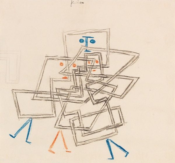 Curator: Okay, let's talk about Theo van Doesburg's "Seated Female Nude, her Hand on her Head," created in 1916. It's an ink drawing on paper, a very distinct piece within his exploration of De Stijl principles. Editor: Wow, well... it's definitely... something. I see this figure constructed from rectangles and squares like she's been architecturally drafted, right? Sort of unsettling, almost clinical. It's the most un-nude nude I’ve ever seen. Curator: Indeed, and that's the fascinating tension here! De Stijl was about stripping down to essential forms, universal harmony through pure abstraction, moving past the individual and the subjective, in part through radically simplifying everything into horizontals and verticals. It seems paradoxical to then apply this to the female form, historically so charged with meaning. Editor: So, the societal view on the female figure goes through a filter of radical objectivity. I can see how it might serve as a social critique—questioning conventional representation and maybe even societal objectification. A deliberate reduction of the figure as commodity. Curator: Precisely, but let's remember Van Doesburg’s own internal motivations, too. World War One impacted everyone, including him. There's an angst, a discomfort. Could the choice to disassemble the female form also reflect a destabilizing world? And, what I think is often missed, a surprising wit in using stark geometry for a topic known for sensual curves. Editor: Wit? Really? I mostly saw tension—almost like a beautiful body has been redacted or censored by the horrors of war! Perhaps it shows his sense of humor or lack thereof... Maybe black comedy was en vogue then? It definitely seems stark for its time. Curator: Well, I see both tension *and* a dry cleverness. His abstraction feels deliberate in pushing boundaries but he is also exploring universal ideals during extreme conditions. This creates a new role for the nude – not mere object, but thought-provoking social sculpture. The reduction is not just aesthetic but purposeful. Editor: A rebellious form. I appreciate learning that now. It challenges our preconceptions on multiple fronts—formally and socially. Okay, it makes the whole piece even bolder. Curator: Precisely! Thank you.