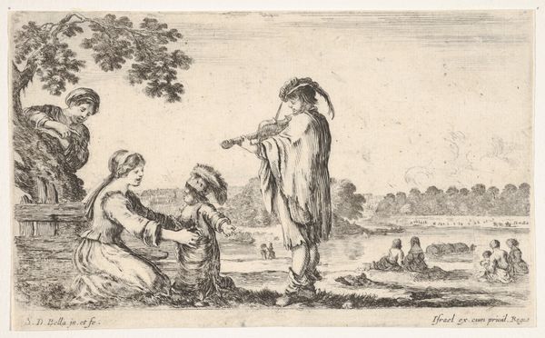 Stefano della Bella created this print, “Two Resting Men in a Landscape,” sometime in the 17th century. During this period, artists were expanding the conventions of genre art, often depicting scenes of everyday life. Della Bella’s print captures a moment of respite in the countryside. The landscape is rendered in delicate lines, and the figures, presumably lower class, are relaxing under a tree. Yet, these images of leisure were often infused with the complex social dynamics of the time. Who are these men and what are their stories? How does their social standing influence our interpretation of their rest? Are they figures of an idealized rural existence or merely pausing from difficult labor? By engaging with the artwork, we are asked to reflect on the societal structures that shape experiences of work, leisure, and identity, then and now. What does it mean to pause, to rest, and who gets to do so?