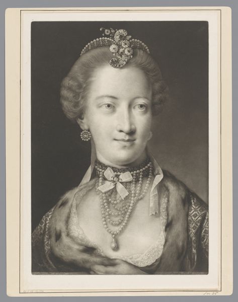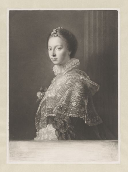 Editor: Here we have a 1930 photogravure by Domenico Anderson, "Fotoreproductie van het geschilderde portret van Eleonora van Toledo door Angelo Bronzino," which translates to "Photographic reproduction of the painted portrait of Eleonora of Toledo by Angelo Bronzino". The somber tones and the subject's reserved expression create such a regal, almost untouchable aura. What’s your take on it? Curator: This image, beyond being a reproduction, exists as its own historical artifact, capturing not just Eleonora but also early 20th-century understandings of power, gender and visibility. Think about it: Domenico Anderson chose to photograph Bronzino’s painting. He mediated our access. This speaks to the fascination with, and the potential commodification of, female power. What does it mean to reproduce an image of a powerful woman like Eleonora, a Duchess, during a time of evolving gender roles? Editor: So you’re saying that the act of reproducing the painting itself carries a cultural weight? Curator: Precisely! And consider the print medium itself. Photography democratized art but also changed its meaning. This image circulates, becoming accessible to a wider audience than Bronzino's original ever could. However, in doing so, we risk losing the textures, the painterly details, the sheer *presence* of the original, flattening the image. Who gets to access art, and how does that access affect our understanding? Those are key questions. Editor: I never considered the social implications of reproducing an artwork. This print transforms the portrait from a singular object of reverence to a mass-produced representation. Curator: Exactly. And how that image functions in different contexts, that's the core of the issue. Considering both Bronzino’s original and Anderson's reproduction through an intersectional lens, questioning the distribution of art and its subjects is crucial. Editor: This has made me rethink how I approach not just portraits, but photographic reproductions in general. I'm realizing there's always another layer to peel back. Curator: Agreed, and acknowledging these layers reveals not only art’s intricate construction, but the broader power structures shaping our views of history and identity.