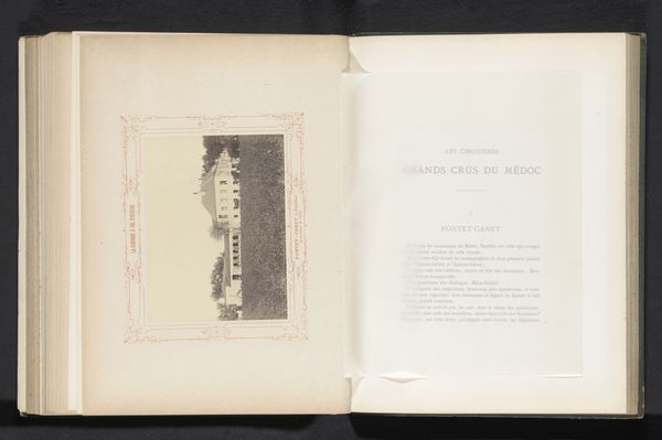 Curator: Here we have an image titled "Gezicht op Château Mouton-Rothschild in Pauillac, Frankrijk", taken by Alfred Danflou, sometime before 1867. It's an albumen print, carefully preserved within an album. Editor: My first thought is how still and serene it feels. The vertical composition and the stark contrast of light and shadow almost create a sense of timelessness, like a stage set awaiting its players. Curator: Indeed. Danflou’s choice of the albumen process gives the image a subtle warmth, a kind of nostalgic filter even for its contemporary audience. Note how the building almost rises as an emblem of industry among nature, suggesting control and authority. Editor: Right, the photograph certainly participates in a visual narrative of power, where architecture becomes a symbol of social and economic dominance. Chateau Mouton-Rothschild isn't merely a building but a landmark of wealth in this period. How do we contextualize its production in the wake of emerging class structures and their impact in rural regions? Curator: The precision and realism achieved with photography here contribute to a broader understanding of 19th-century material culture and progress. Buildings represented advancement; symbols of innovation and national pride were considered quite literally ‘building blocks’ for success. Editor: It’s fascinating how these landscape images simultaneously glorify progress and subtly mask potential exploitation, reinforcing existing power structures. This depiction of Mouton-Rothschild encourages admiration for architectural grandeur. Did Danflou address, intentionally or otherwise, its broader socioeconomic ramifications at the time? Curator: It prompts us to explore symbols within their particular period and reflect on visual motifs, cultural beliefs and progress. The enduring imagery holds cultural weight through this landscape; its very preservation signifies cultural endurance, in itself a point for observation. Editor: Looking at it now I’m increasingly struck by the picture’s power and capacity to ignite such layered discourse regarding historical, socioeconomic and aesthetic contexts – I’m appreciative for a richer, more thorough contemplation of the artwork’s visual and narrative dynamics.