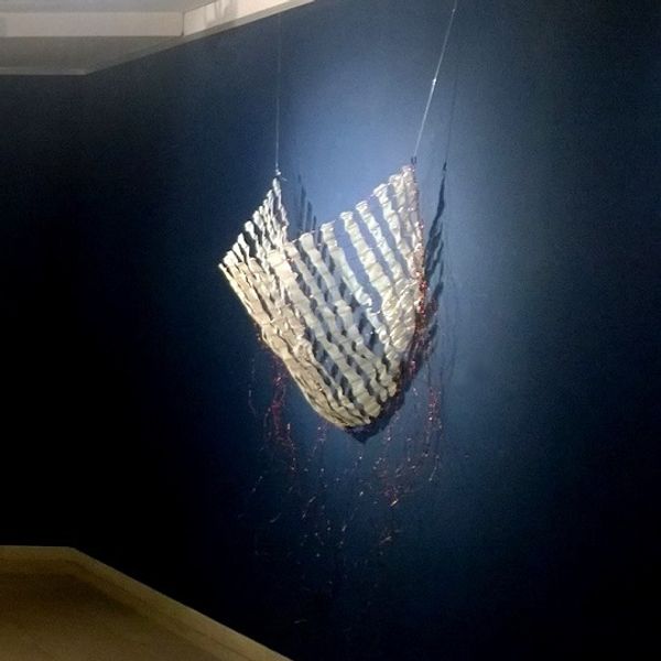 Rodrigo Franzao made 'Net' from found materials, giving new life to what others might discard. I really respond to how Franzao builds up the surface of the work, creating depth and texture through layers of paper and wire. The central image feels like a hidden world, framed by torn paper and a perfectly imperfect ring, drawing you in. The thin copper wires below add a sense of fragility. The way these materials catch and reflect light is kind of exquisite. The rawness of the edges, the visible marks of construction, feels honest. It’s this feeling of openness that reminds me of the Arte Povera movement, the Italian artists who embraced everyday materials. Like them, Franzao shows us the beauty in the overlooked. 'Net' is not just an object; it’s an invitation to slow down, to look closely, and to find poetry in the unexpected.