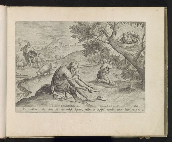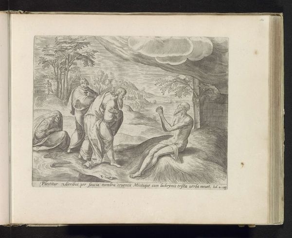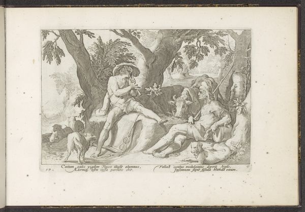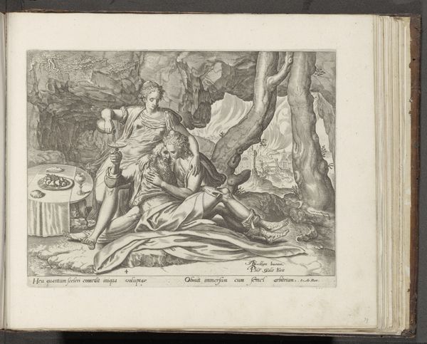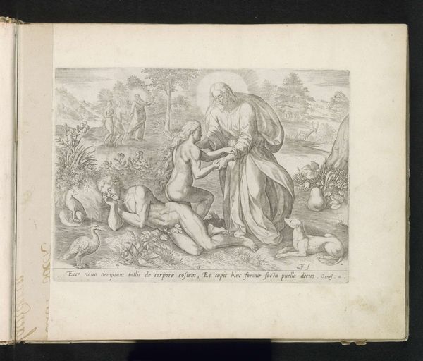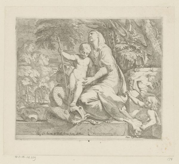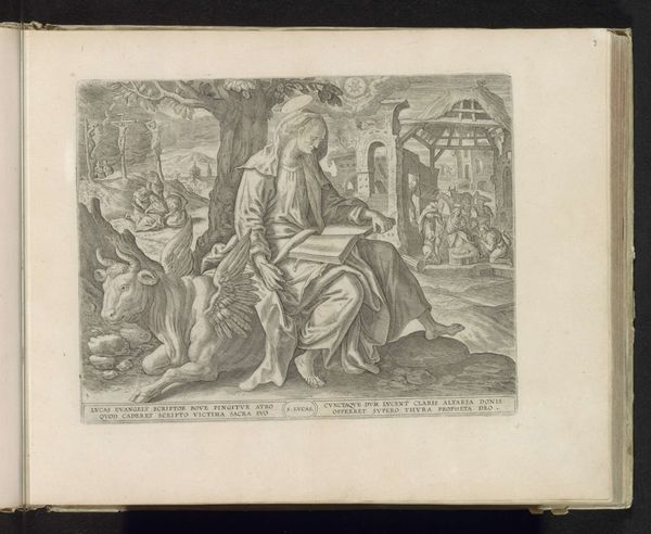 This engraving of Saint John writing the Gospel was created around 1600 by Wierix and is now held at the Rijksmuseum. The image is dominated by the detailed and precise lines that define the figures and the landscape, creating a sense of depth and texture. The contrasting areas of light and shadow pull the viewer's eye towards the saint. The composition presents a clear juxtaposition between the earthly and the divine. John is seated in a natural setting but is also in contact with a mystical, ethereal realm. The lines of the landscape draw the eye toward John, and the interplay of light and shadow emphasize the textures of the eagle and the saint’s garments. The structure of the piece invites us to interpret the layers of meaning. Ultimately, it functions as a complex sign, inviting ongoing interpretation of faith and representation.