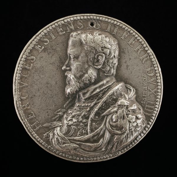 Curator: Up next, we have a bronze medal created before 1566 by Domenico Poggini. It depicts Benedetto Varchi, the Florentine historian and man of letters. Editor: Wow, it’s remarkably preserved for something so old. The level of detail, especially in his beard and hair, is captivating. It makes you want to touch it, to feel the contours. It has such gravitas, don't you think? Like a small portal into another time. Curator: Absolutely. Portrait medals like these served as miniature monuments, portable celebrations of a person's accomplishments and status. Varchi was a prominent figure, and having his likeness immortalized in bronze reflects his importance in Renaissance society. Editor: It's interesting how these medals functioned almost like profile pictures before photography. It's like saying, "This is me, this is what I represent." Except in solid metal! Imagine having this displayed on your desk – quite the statement. Curator: Indeed. They circulated among the elite, acting as both commemorative objects and tools for building social networks. To own a medal of someone like Varchi indicated your connection to humanist circles and intellectual life. Editor: So, it’s not just art, but a political symbol too, wouldn’t you say? A way to broadcast affiliations and values in a pretty tangible manner. Also, did the sitter and artist decide together what view of Varchi to capture? Was there some self-fashioning involved? I wonder... Curator: That’s a great question, and likely so! There’s a dialogue involved in every commission like this. It shows a particular self-conscious construction of identity that was part and parcel of the Renaissance. I find this piece is also a reminder that history is not just about names and dates, but about how people chose to present themselves. Editor: Precisely! This humble little disc tells us so much. I feel like I understand the Renaissance a little bit better now.
