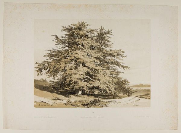 Alexandre Calame created "Landschap met ceders," or "Landscape with Cedars," an undated artwork, using lithography. Calame was Swiss, and he made this work during a period when artists explored national identity through landscape. This neutral-toned print shows a landscape where nature dominates, a sharp contrast to the growing industrialization of Europe. But who has access to this untouched nature? The romanticized view often obscures the labor and the people who work the land. Whose stories are left out of these idyllic scenes? Calame’s work invites us to reflect on our relationship with nature and how it intertwines with our understanding of self and place. He shows a romanticized view of the natural world, but it omits the realities of class and labor. What does it mean to find beauty in a landscape marked by social and economic divides?