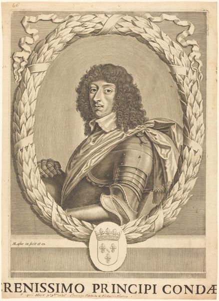 This engraving depicts Charles II of England and was created by Frederik Bouttats, who was active in the 17th century. This portrait offers a glimpse into the complexities of identity and power during a period of monarchy and upheaval. Consider the weight of Charles's position, symbolized by the crown subtly placed behind him, as well as the emblems of royalty emblazoned at the bottom. His gaze, though poised, may hint at the tensions of his reign, marked by political and religious conflict. Bouttats, as the artist, navigates the politics of representation, contributing to the construction of royal authority. Such portraits served not only as representations but also as tools of power, shaping the perception of rulers. Take a moment to consider the portrait's delicate balance between personal expression and the performance of sovereignty. How might we interpret this image through the lenses of class, gender, and the intersection of power and representation?