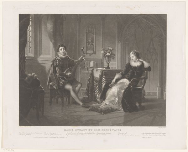 Carel Christiaan Antony Last created this print, titled ‘At the English Ambassador's During the St. Bartholomew's Night’, using the technique of steel engraving. Engraving is a labor-intensive process. The artist uses a tool called a burin to carve lines directly into a metal plate. The depth and density of these lines determine the amount of ink held, and thus, the tonal range of the final print. This painstaking process requires considerable skill and precision, reflecting a tradition of craftsmanship. Steel engraving allowed for finer lines and larger editions than copper. Notice how Last used this to create a range of textures, from the heavy drapes to the tense expressions on people's faces. Prints such as this one served as a means of disseminating historical narratives in the 19th century. In this case, the subject is the St. Bartholomew's Day Massacre, a dark episode of religious violence. While seemingly distant from the world of labor, this print has a strong relationship to the modes of production. It makes a statement about the value of human life and the cost of conflict.