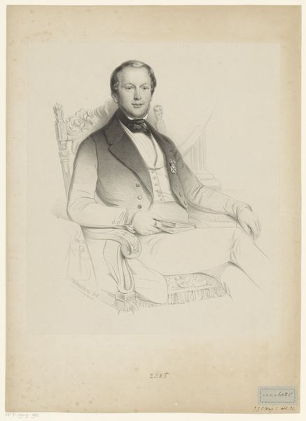 This is a portrait of Herman Johan Engelkens, made by Johan Hendrik Hoffmeister using lithography. This printmaking process involves working on a flat stone or metal plate with a greasy substance, then applying ink which adheres only to those areas. The appeal of lithography was in its relatively direct means of production; it allowed for a drawing-like effect that other printmaking processes didn't. In this portrait, the softness of the lithographic crayon allowed Hoffmeister to render the textures of Engelkens's clothing with precision. But what makes it particularly compelling is how the printmaking process relates to the subject. The mechanization of image production chimes well with the rise of a new industrial and professional class, of which Engelkens was a part. Ultimately, this portrait, like others of its kind, documents the means of production in nineteenth-century society. By considering the labor, processes, and materials, we appreciate the cultural and social meanings embedded in this artwork.