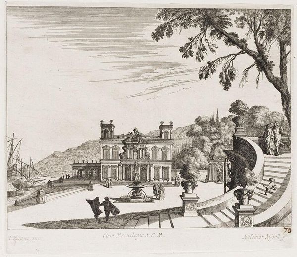 Curator: This delicate etching by Melchior Küsel depicts a bustling scene on the Grand Canal in Venice. It's all lines, isn't it? Editor: Absolutely, and those lines give it such a frenetic energy! I feel a kind of controlled chaos, a bit like the city itself. Curator: It does capture that Venetian blend of elegance and grit! Look how the architecture looms, but the gondolas are practically swarming the water. All this class disparity existing in the same space! Editor: Yes, this really seems to showcase the theatricality of Venetian life, almost like a stage where class and social status is on full display. Makes you wonder who gets to watch, and who gets watched. Curator: Interesting, that interplay between watcher and watched—adds another layer of depth to what might seem a simple cityscape. Editor: It's a reminder that even these picturesque scenes are laden with sociopolitical undertones. Curator: Well said, indeed, making us question our own perspectives as viewers, even now. Editor: Precisely, and prompting us to reflect on the enduring nature of these power dynamics.
