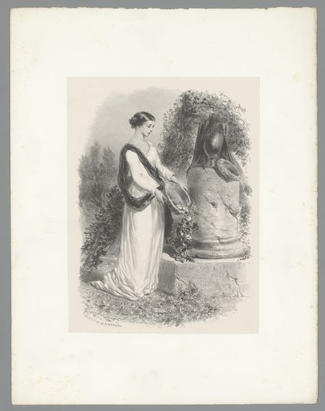 Paul Gavarni created this drawing, "Vrouw met glas wijn praat tegen vrouw met boek," using pen and brush in ink, with wash, on paper. The composition immediately divides into two distinct realms, demarcated by stark contrasts in posture and tone. On one side, a woman reclines with a book, embodying a posture of defeat. In contrast, a standing figure holds a glass, her upright stance and sharp lines suggesting a dynamic tension. Gavarni uses the stark monochrome to enhance the emotive contrast. This theatrical treatment implies a narrative tension, heightened by the figures arranged almost as in a stage scene. The formal oppositions here—between activity and passivity, shadow and light—transcend mere representation, revealing a deeper commentary on societal roles and individual agency. This piece compels us to consider how Gavarni uses form to construct meaning.