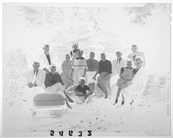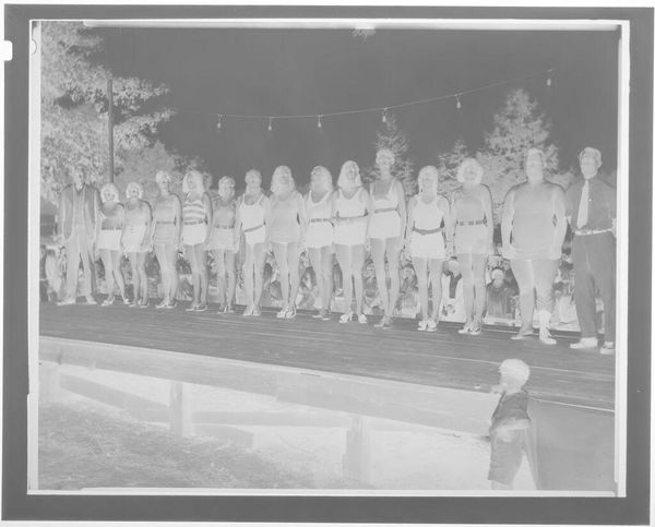 Editor: This is an Untitled photograph by Jack Gould, taken on VJ day. Looking at this group of young men cheering on what appears to be a car, I can almost hear the jubilation. What do you see in this piece? Curator: It's the raw energy that grabs me. A moment perfectly crystallized – the relief, the hope, the sheer release of pent-up emotion after years of war. Makes you wonder about their individual stories, doesn't it? Where did life take them after this day of unbridled joy? Editor: Absolutely, it’s like a freeze-frame from a movie. A historical turning point captured, but also so deeply personal. Curator: Precisely! And that tension is what makes it art, not just documentation. Food for thought, eh?