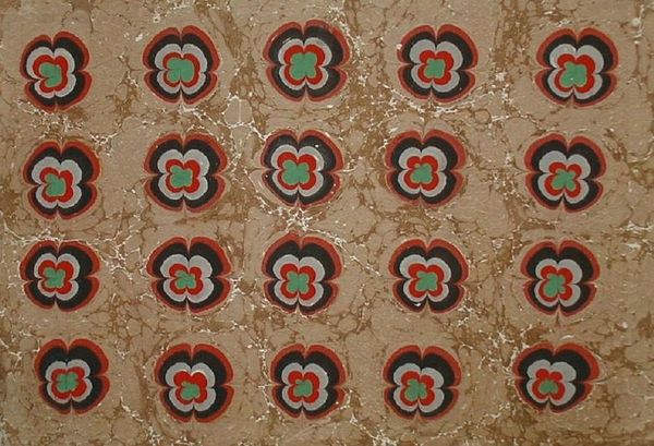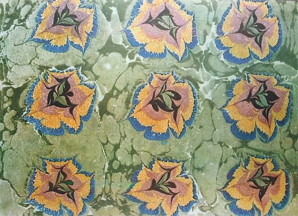 This "Ebru" or paper marbling, attributed to Hatip Mehmed Efendi, presents a striking display of floral motifs achieved through a delicate process of floating pigments on water. These blossoms, rendered with swirling patterns and vibrant hues, resonate deeply with the traditional Islamic art emphasis on nature and ornamentation. One cannot help but be reminded of the lotus flower, a potent symbol across various cultures. In ancient Egypt, it symbolized rebirth and regeneration, while in Buddhist traditions, it represents spiritual purity and enlightenment. The lotus’s journey across continents and creeds echoes the enduring human fascination with the natural world, and the cyclical patterns of life, death, and renewal. This Ebru, with its fluid patterns and vibrant colors, evokes a sense of movement and transformation, engaging viewers on a deep, subconscious level. These floral patterns, like those found in ancient tapestries and illuminated manuscripts, remind us of the continuous ebb and flow of cultural ideas across time and space. It serves as a visual reminder of the power of symbols to transcend generations.