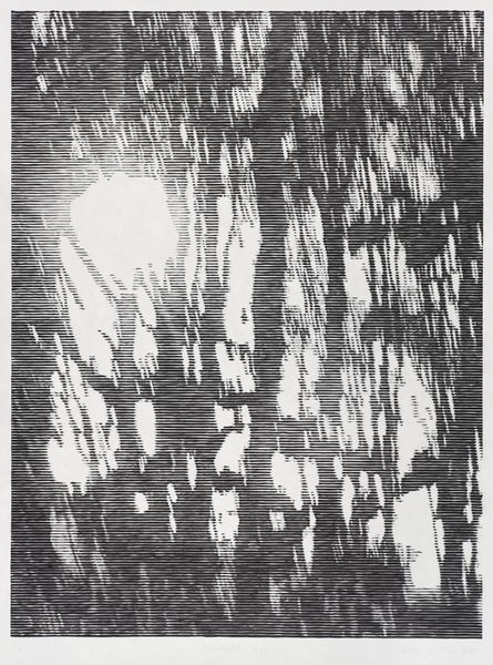 Editor: So, this is M.C. Escher's "Puddle," a wood engraving from 1952. It looks like a pretty mundane scene – a muddy path reflecting trees in a puddle, but the sharp angles and contrast make it quite striking. How do you interpret this work? Curator: What strikes me first is the double image – reality and reflection. The puddle is almost a mirror, showing us a different perspective. Throughout time, water and reflections have symbolized consciousness, the self, even the subconscious mind. Consider the ancient Greek myth of Narcissus, or the Jungian concept of the shadow self often seen as a reflection. Editor: That's fascinating. It definitely feels like more than just a pretty picture. Curator: The path itself is equally important. Note the tracks: footprints, tire marks… symbols of journeys taken, lives lived. They remind us that we are constantly leaving our mark, not just on the land but also on time itself. Do you feel that you are "leaving your mark," Editor? Editor: I hadn't thought about it like that, but now I see how it’s almost a visual metaphor for our impact on the world, and how the world in turn is reflected in us. It's a bit sobering! Curator: Yes, the symbols used carry emotional, cultural, and psychological weight over time. We cannot divorce our personal understanding from those archetypes present in human consciousness since the dawn of mankind. This small "Puddle" reminds us of these immense interconnections. Editor: Wow. I came in thinking it was just a clever optical illusion, but I’m leaving with a whole new appreciation for Escher’s visual vocabulary. Thanks! Curator: The visual vocabulary of every artist extends through cultural memory itself. Perhaps now, you see that you are also a part of that ongoing story!