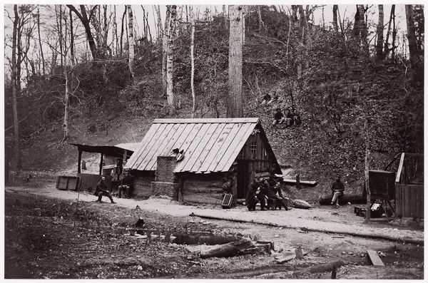 Editor: We’re looking at "Freienwalde a. O.," a gelatin-silver print made in 1886 by Alfred Stieglitz. It feels like a candid snapshot, but something about the men gathered at what looks like a bathhouse also makes me uneasy. What's your take on it? Curator: That unease is understandable. While seemingly a casual genre scene, it’s vital to understand the power dynamics inherent in the male gaze, even a century ago. The men seem to be observing someone within that doorway, or perhaps commenting on who will be going in. Consider the German text; in English, it says something like "For baths." Who do you think is afforded access to these "baths"? And, conversely, who is excluded, or othered? Editor: So you're saying it’s less about a simple scene and more about issues of access, class, and potentially gender, given it specifies "baths?" Curator: Precisely. Early photography, like this, wasn’t merely documenting; it was participating in shaping social perceptions. Stieglitz, despite his artistic talent, was also a man of his time, part of a specific social class. How does his perspective influence what he chooses to capture and, more importantly, how he captures it? Are we, as viewers, complicit in that gaze? Editor: It definitely reframes how I see the photograph. It’s no longer just a historical image, but a document of social power at play. I was looking at it only for its composition and atmosphere. Curator: It's a beautiful image, no doubt, with its soft focus and subtle tones characteristic of Pictorialism. But acknowledging the historical and social context allows us to have a much more critical conversation. What do you make of the composition now, understanding that the artist has choices on who he includes and doesn't? Editor: I’m thinking about what is left out, the unseen, rather than what is presented. So the figures on the path and behind the fence…they could be further emphasizing exclusion? Thanks for making me rethink my first impressions! Curator: Exactly. By examining the "unseen," we unpack the broader narrative embedded within this single frame. I've found my own assumptions challenged!