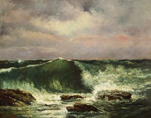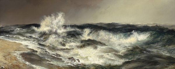 Editor: This is Aivazovsky's "The Black Sea" painted in 1881. Looking at this dramatic seascape rendered in oil, I’m struck by a feeling of foreboding – the immense power of nature seems ready to swallow everything. What social narratives do you see present in this piece? Curator: That sense of foreboding is key. Let’s consider the socio-political context: the late 19th century, Tsarist Russia expanding its power, the Black Sea as a site of strategic importance and military conflict, a gateway to trade and, crucially, a space where Russia exerted its imperial control. Aivazovsky, as an Armenian artist working within this system, often depicted the sea as sublime, untamable. But is that untamable nature resisting Russian authority or amplifying its dominance? How might we interpret that in light of, for instance, feminist and postcolonial theory, which teach us to scrutinize power structures inherent even in seemingly "natural" depictions? Editor: I hadn't considered that tension between the sublime and imperial power. Is the painting therefore celebrating Russian naval power or is it showing the insignificance of humanity in the face of it? Curator: It’s probably doing both. And it speaks to Aivazovsky’s complicated position, his negotiation between artistic expression and political reality, which raises vital questions. How did the narratives he presented challenge or perpetuate existing cultural inequalities? What is romanticizing about such unequal, harmful contexts of geopolitical expansion, and the military conflicts required to secure it? Editor: That's fascinating. It complicates my understanding and forces me to consider the deeper social meanings behind the seascape. Thanks! Curator: It does the same for me too! This exercise proves that an artwork never simply *is.* Its interpretation demands that we discuss history.