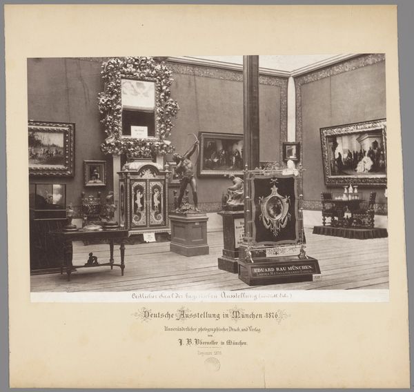 This anonymous photograph captures an arrangement of German artworks at the Bayerisches Nationalmuseum in Munich, around 1870. It is a scene carefully staged to showcase the artistic achievements and cultural heritage of Germany. We see a range of objects, from ornate furniture and decorative arts to a suit of armor atop a horse. In the background, a mural suggests historical narratives and national identity. This image raises questions about the role of museums in shaping national identity and cultural memory. Museums like the Bayerisches Nationalmuseum emerged in the 19th century as institutions dedicated to collecting, preserving, and displaying objects of cultural significance, which would reinforce a sense of shared history and national pride. Was it self-consciously conservative? By studying exhibition catalogs, museum records, and other historical sources, we can gain insights into the social and political context in which these artworks were created and displayed, and understand how museums have functioned as sites of cultural production and national representation.