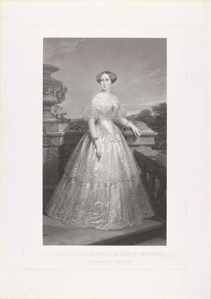 Curator: This is Pierre Joseph Tavernier’s rendering of Queen Victoria, housed here at the Harvard Art Museums. Editor: It’s striking how much the dress dominates the composition; the lace, the satin, the trim - a material statement of power. Curator: Absolutely. Court portraiture was, of course, designed to project power, but also legitimacy. Tavernier, born in 1787, positions Victoria within a long tradition of regal representation. Editor: I wonder about the labor involved in producing such a gown. Each embroidered detail speaks to the vast resources at Victoria’s disposal, and the class structures that made it possible. Curator: Precisely. These portraits weren’t just about the individual but the entire institution of monarchy, its staying power and authority. Editor: Looking at this image, I see the weight of empire materialized in fabric and jewels. Curator: Indeed, a potent reminder of the visual language of power. Editor: The very act of making this piece is just as telling as the final image.