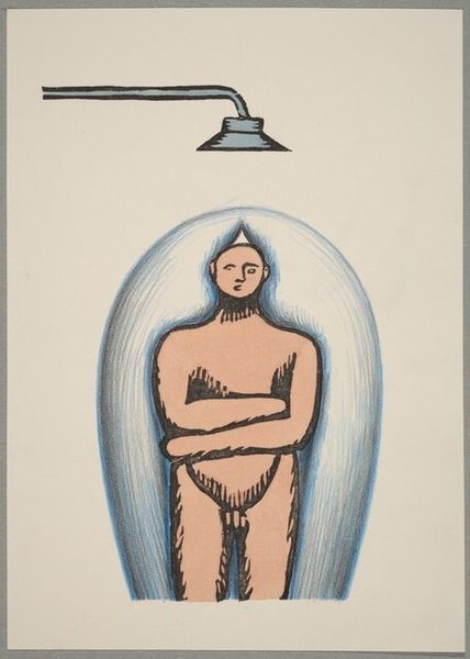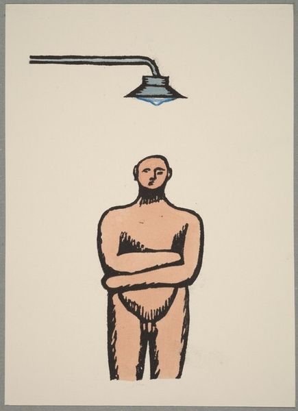 Ilya Kabakov made this piece, "Preface," using ink on paper. Look how the figure is rendered with such economical lines! It’s a dance between what's there and what's left unsaid, very process-oriented in its conception. There’s a starkness to the colors, right? The limited palette amplifies the rawness of the ink. It feels almost like a blueprint, exposing the underbelly of form. Notice the way the black ink wobbles around the nude form of the figure – it's imperfect, human, but the black outlines are so assertive, they give the form a strange kind of power. The relationship between the figure and the showerhead above is a little absurd, too. I'm reminded of Philip Guston’s simplified forms and his way of rendering mundane objects with a kind of cartoonish gravity. Ultimately, it's the unresolved tension that makes this piece so compelling. It invites endless readings.