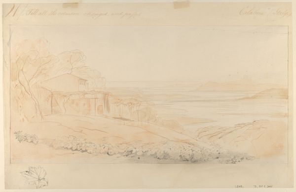 Curator: Looking at this landscape, "Landskab ved Vissing med Langø," or Landscape at Vissing with Langø, penciled by Dankvart Dreyer sometime in the 1840s, I feel an overwhelming sense of tranquility. It's a very soft, almost ethereal drawing. Editor: Ethereal, yes, and deceptively simple, isn't it? I mean, it’s just pencil on paper, but there’s so much implied about 19th-century Danish landscape aesthetics, the Romantic movement... You almost feel you are looking at a memory being captured. Curator: Exactly. Dreyer really makes you feel that personal connection to the place. There’s something so intimate about a pencil sketch, it really does feel like he is capturing the essence of a fleeting moment, something raw, unfiltered... Editor: Which contrasts intriguingly with how constructed landscapes were becoming, both politically and socially, in that period. Landscape painting often served as an expression of national identity and even a form of subtle land surveyance in many parts of Europe during this time. Curator: Hmmm. That could explain why it looks so calm, balanced, almost a vision of ideal, controlled land. What are you saying? That maybe this drawing does, subconsciously or consciously, tell us that too? That's it not really as natural, untouched as I first felt? Editor: Precisely! While seemingly untouched, Romanticism was a tool that subtly mirrored social values and land policies back at its audience, to make them appealing. Plus, notice how it sits within the collection of the SMK - Statens Museum for Kunst. Doesn't it then gain a secondary life because of the institution which owns it and how we interact with it here? Curator: Ah, always the clever twist! Well, thanks for bringing that perspective in to my peaceful vision, maybe these landscape images are never as artless or uncontaminated as they seem at first glace. Editor: An ongoing theme for our next discussion!