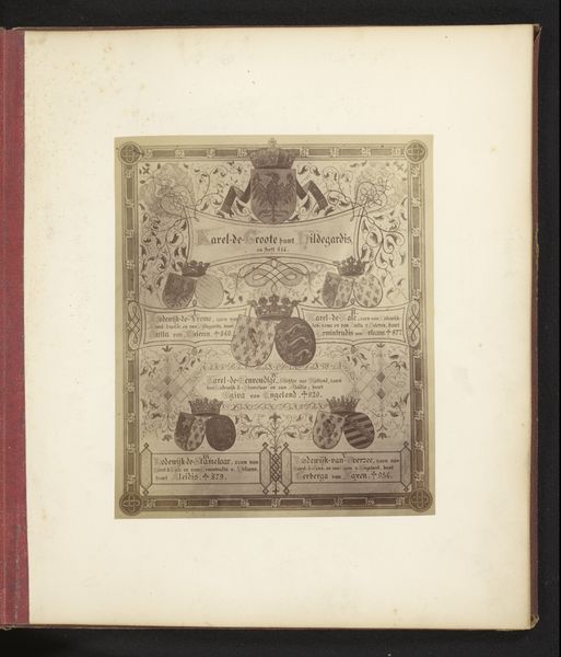 This is a reproduction of a genealogical drawing, presenting the family tree from Ernst-Casimir of Nassau-Dietz to William IV of Orange-Nassau. The drawing's structure visually articulates a hierarchy, using heraldic shields and ornate cartouches arranged in a descending order. The composition, with its symmetrical layout, conveys a sense of order and lineage, typical of dynastic representations. Foliate designs interwoven throughout the structure soften what could otherwise be an overly rigid framework. The work engages with visual semiotics, where symbols such as crowns, crests, and shields are not merely decorative but signify power, inheritance, and historical continuity. The arrangement and artistic rendering are crucial. They reflect a conscious effort to construct a narrative of legitimacy and succession. The delicate linework and meticulous detail, despite the drawing's age, highlight the enduring role of graphic representation in shaping perceptions of history and authority.