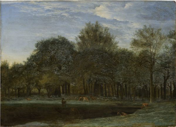 Editor: Here we have Homer Dodge Martin's "Blossoming Trees," an oil on canvas landscape painting. It feels a little melancholic, like a memory. What do you see in this piece? Curator: Notice how Martin renders blossoming trees as transient, almost ethereal forms. The blossoms themselves serve as a powerful symbol of fleeting beauty and the cyclical nature of life. Consider the enduring cultural association of blossoms with renewal, but also with the poignant awareness of temporality. Editor: So, the blossoming trees are more than just pretty? Curator: Precisely. They are loaded with symbolic weight. Do you feel the emotional tension between the promise of new life and the implicit acknowledgement of its inevitable decline? It's a timeless theme, isn't it? Editor: I never considered that before. It's a lot deeper than I initially thought.