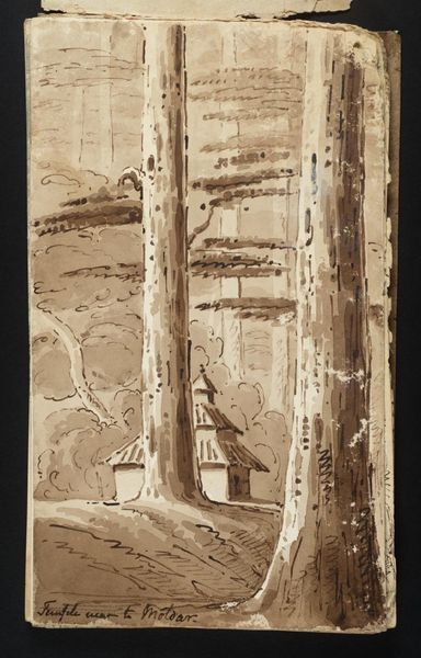 Curator: This is "Wilmington Barn" by Dugald Sutherland Maccoll, held in the Tate Collections. It’s a watercolor piece, intimate in size at approximately 25 by 35 centimeters. Editor: It's quite striking, almost skeletal. The barn's framework dominates, that structural gaze feels distinctly masculine in its bareness. Curator: I see the barn as a testament to rural labor, and how it shapes the landscape and community around it. A cultural hub, even. Editor: Absolutely, and it’s interesting to consider Maccoll’s position as a painter of such scenes. Was he challenging or reinforcing notions of class and rural identity? Curator: His technique seems to suggest a sense of the ephemeral nature of labor and how it exists within specific socio-economic constructs. Editor: I agree. It raises questions about permanence, labor, and the narratives we build around rural life. Curator: It’s a poignant reminder of the structures—both physical and societal—that shape our world. Editor: Precisely; a simple image with surprisingly complex layers of social commentary.