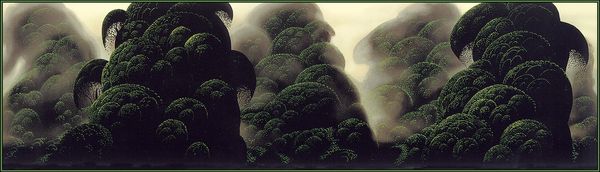 "Forest Magic," by Eyvind Earle presents a captivating, stylized forest scene that whispers of ancient myths and the enduring power of nature. Here, the trees are not merely trees; they are symbolic pillars, reaching towards the heavens, reminiscent of Yggdrasil, the world tree of Norse mythology. Consider the forest as a motif: throughout history, it has been seen as a place of mystery, danger, and spiritual awakening. In medieval tapestries, forests are often depicted as the dwelling place of mythical creatures. The Romantic poets found solace and inspiration in the solitude of the woods, a reflection of the inner self. Like the Romantics, Earle perhaps taps into our collective unconscious, evoking a sense of awe and reverence for the natural world. The forest becomes a mirror, reflecting our own hopes, fears, and our longing for connection with something greater than ourselves. This work then is not simply a landscape; it is a profound exploration of the human spirit, forever intertwined with the magic and mystery of the forest.