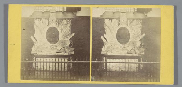 Editor: This intriguing photograph, taken between 1860 and 1885 by Pieter Oosterhuis, captures the monument of Jan Hendrik van Kinsbergen inside the Nieuwe Kerk in Amsterdam. It has such a solemn and still mood. What kind of visual and historical memories does it trigger for you? Curator: The monument itself is intensely evocative. The stark white marble against the aged stone implies purity, memory, but also the stark reality of death. See how the iron bars create a psychological barrier? They symbolize the separation between the living and the dead, but they also offer protection, reverence. Kinsbergen's legacy is being preserved here, memorialized, but made remote at the same time. What do you think of that visual tension? Editor: That makes so much sense! The bars act as both a barrier and a viewing portal. They highlight the neoclassical style and its emphasis on order and memorializing figures. But is that fence also separating us from the memory of this man? Curator: Precisely! Photography captures an objective image of this constructed memory, forcing us to contemplate our relationship to history. Each generation must navigate these layered symbols and decide what Kinsbergen means to them. Editor: I never considered photography as a means to explore collective memory and the emotional weight that it carries. Curator: It is a fascinating interplay between medium and message! Every photograph of a cultural monument contains a unique, loaded, and very tangible sense of being there. It allows one to imagine not only being alive at the time, but alive after that moment was taken. Editor: Thank you, that truly deepened my appreciation of how much meaning is packed into a single image. Curator: My pleasure. It's been a pleasure looking closely at it with you.