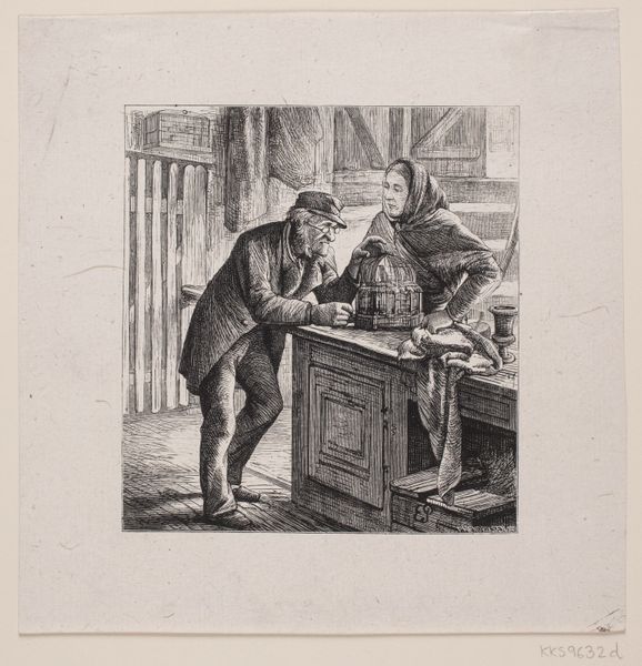 Editor: This is "Old Men's Enjoyment" by Jacques Firmin Beauvarlet. It's an etching, and the scene feels so intimate, like a captured moment. What do you see in this piece, beyond just old men enjoying… something? Curator: It tickles my funny bone, honestly. Look at their faces, all scrunched up in concentration over their little pile of coins. It's about more than just money, isn't it? It’s about control, security, maybe even a bit of rebellion in their twilight years. Ever feel like you're hoarding moments, not money? Editor: That's a really interesting take! I was so focused on the age aspect, but the idea of rebellion… I hadn't considered that. Curator: Exactly! It's a reminder that joy, in any form, is precious, especially as time marches on. Beauvarlet's captured a quiet revolution here.