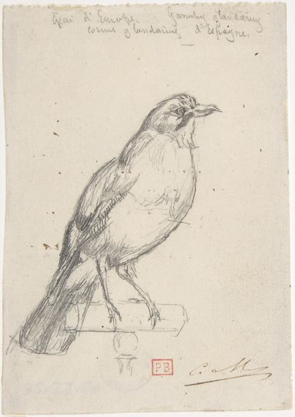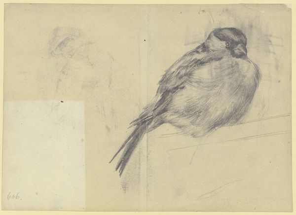Editor: Here we have Gerrit Willem Dijsselhof's "Kaproenvink," made sometime between 1876 and 1924. It's a pencil and charcoal drawing. It seems almost confrontational, this bird staring right at me. What do you see in this piece? Curator: This seemingly simple drawing offers us a powerful lens through which to examine the complex relationship between humans and the natural world. Think about the period it was created in - a time of intense industrial expansion, urbanization, and colonialism. How might this representation of a bird, so vulnerable and exposed on the page, be interpreted as a commentary on the encroaching domination of nature? Editor: So, you’re saying that even a small drawing like this can have political undertones? Curator: Absolutely. Consider, too, the use of charcoal and pencil – readily available, almost primitive tools. Does this choice speak to a longing for a simpler existence, a resistance against the technological advancements that were reshaping society at the time? Also, does the gaze of the bird reflect the trauma of ecological loss and the growing tension of the era? What if the subject isn’t as benign as it looks? Editor: That's a fascinating perspective. I hadn’t considered the materials themselves as part of the message, or its context to contemporary social issues. Curator: It invites us to consider the artist’s position within these power structures and encourages us to critically examine our own relationship with the environment and marginalized voices. And consider who defines which things have importance? Editor: It gives us something to think about. Thanks! Curator: My pleasure. I am happy to explore this piece with you further anytime.