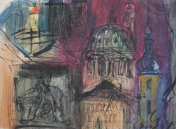 Maria Bozoky made "Towers in Prague" using what looks like crayon or oil pastel, and there's a definite sense of scratching and scraping. The colours are dark, but there's a luminosity that comes from the way the colours are layered. Looking at the surface, you can really feel the texture. It's not smooth, it's got this raw, almost urgent quality. The lines are built up and kind of fighting with each other, especially around the buildings. See that figure floating above the rooftop? It looks almost like it's sketched with a single breath, adding a sense of movement to the solid architecture. This piece reminds me a bit of some of the early expressionist painters, like Kirchner. There's a similar feeling of emotional intensity, of trying to capture not just what you see, but how you feel. Art isn’t about answers, it’s about the conversation.