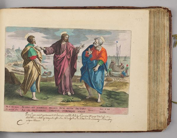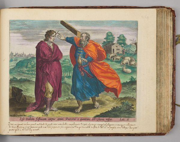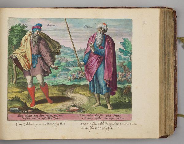 Curator: This is Hans Collaert the Elder's "Jeroboam and the Prophet Ahijah Renting the New Garment in Twelve Pieces." Editor: It's quite striking, visually. The tearing of the garment feels symbolic of a larger societal rupture. Curator: Absolutely. Collaert’s printmaking process, especially the use of engraving, allowed for the precise and repeatable depiction of this key biblical narrative, disseminating the story and its political implications widely. Consider the material realities—the paper, the ink, the labor involved. Editor: It's interesting how the garment becomes a contested object, almost a stand-in for power and control. And the prophet Ahijah—is he a figure of resistance, challenging the status quo? The division suggests a profound redistribution of power. Curator: Precisely. We see how religious narratives were often intertwined with political anxieties about leadership and national identity, particularly the question of who gets what. Editor: This work really brings to light the intersection of religion, class, and politics in visualizing biblical events, prompting us to consider the broader social dynamics at play in its interpretation. Curator: Indeed, and through a materialist lens, we can see the tangible impact of printmaking technology on the circulation of such ideas. Editor: Thank you. It's fascinating to see the artist grapple with power dynamics in such a visual and symbolic way.